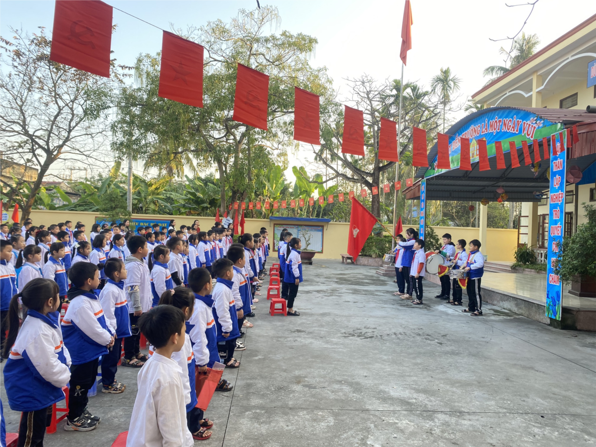Sau phần nhận xét của cô Tổng phụ trách, cô giáo Phạm Thị Hồng Thúy – Phó Hiệu trưởng nhà trường cũng đã lên nhận xét các hoạt động trong tháng 12, có ý kiến chỉ đạo các hoạt động trọng tâm của tháng 1. Sau nghi lễ chào cờ vô cùng trang nghiêm, các em học sinh được lắng nghe phần sinh hoạt dưới cờ chủ điểm “Mừng Đảng, mừng xuân” của các bạn học sinh mang không khí ấm áp và vui tươi của mùa xuân.