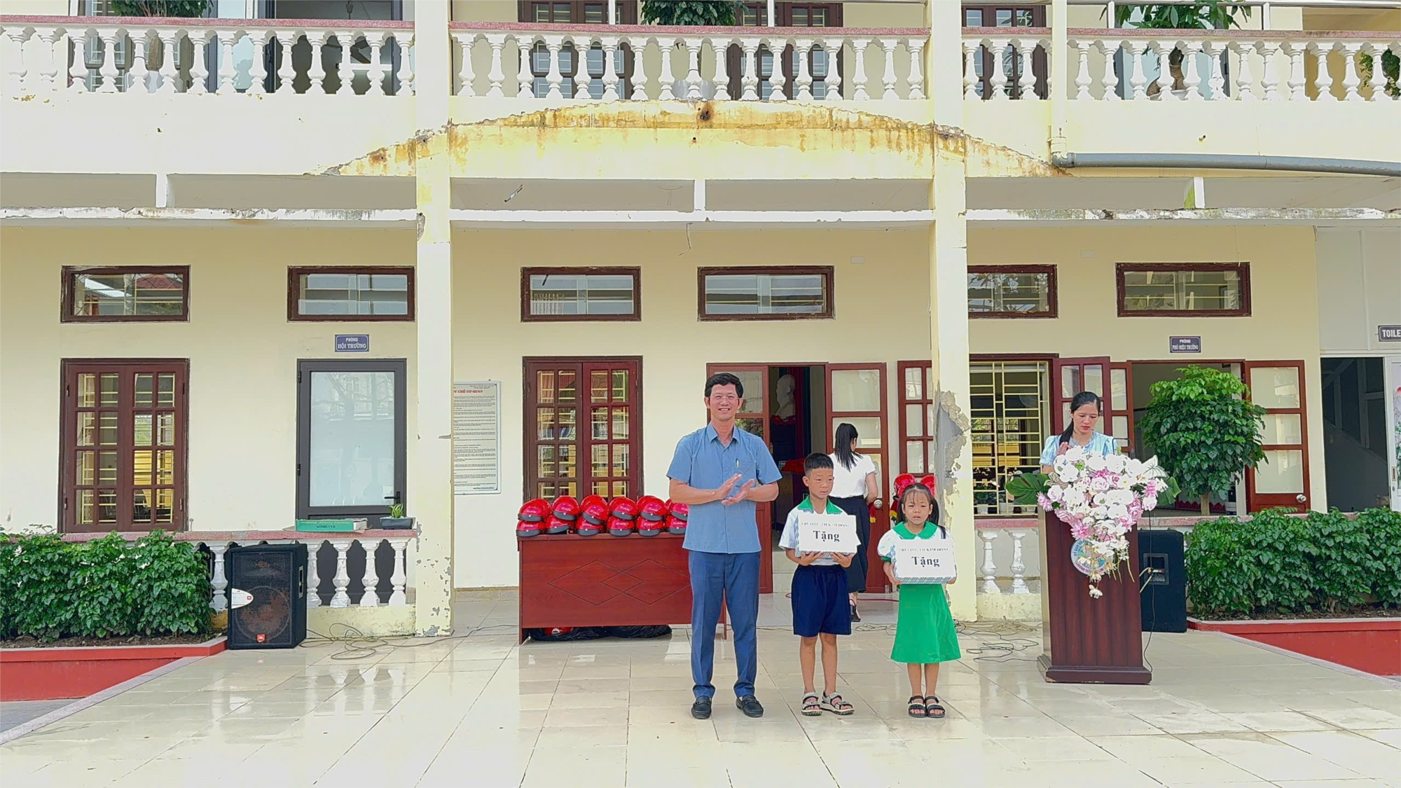 🌟 Cũng trong buổi lễ, công ty Honda đã trao tặng 100% mũ bảo hiểm đạt chuẩn cho các em học sinh khối 1, nhằm đảm bảo an toàn giao thông và nâng cao ý thức đội mũ bảo hiểm khi tham gia giao thông từ khi còn nhỏ. Đây là một hoạt động vô cùng ý nghĩa, góp phần bảo vệ sức khỏe và an toàn cho các em.