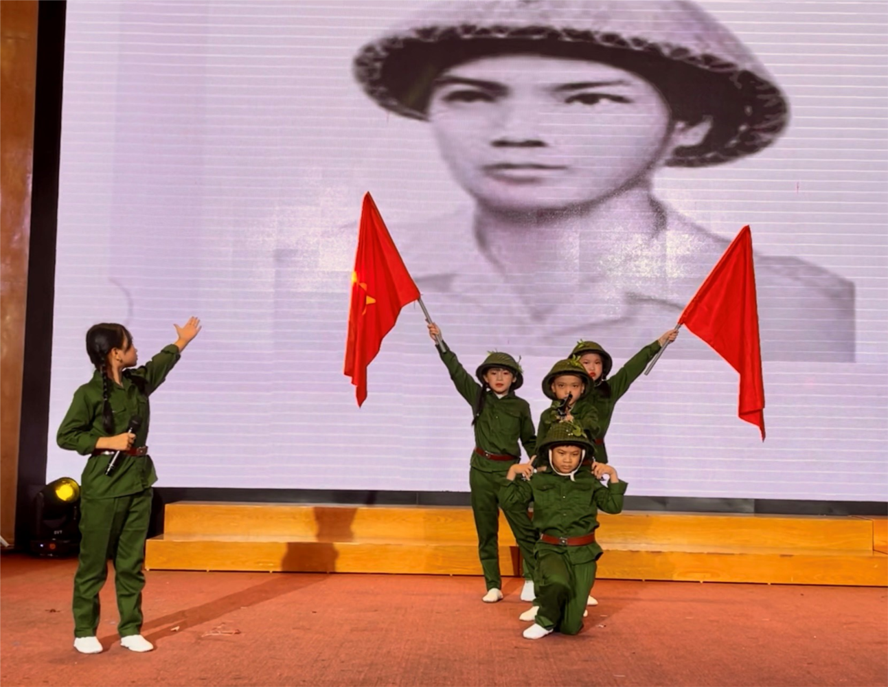 💐💐💐 Phần thể hiện câu của em Nguyễn An Vy cùng các bạn trong đội kịch Sao Sáng học sinh lớp 3C trường tiểu học Kim Đồng đã dẫn chúng ta trở về những năm tháng hào hùng của lịch sử, khẳng định ý chí quật cường của dân tộc trong những năm tháng kháng chiến chống Pháp (Sau 56 ngày đêm “khoét núi, ngủ hầm, mưa dầm, cơm vắt”, chiến đấu dũng cảm, mưu trí, sáng tạo, quân và dân ta đã đập tan toàn bộ tập đoàn cứ điểm Điện Biên Phủ.Chiến dịch Điện Biên Phủ toàn thắng là bản anh hùng ca của cuộc chiến tranh Nhân dân thần kỳ, được ghi vào lịch sử dân tộc như một Bạch Đằng, một Chi Lăng hay một Đống Đa trong thế kỷ XX).