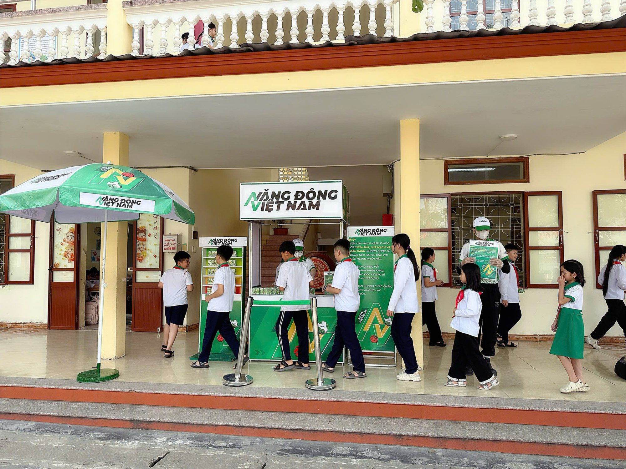 Nhằm góp phần nâng cao thể chất và chăm sóc sức khỏe học sinh, chiều ngày 25/03/2026, Trường Tiểu học Kim Đồng đã phối hợp cùng Nestlé Việt Nam tổ chức chương trình phát sữa miễn phí cho học sinh tại nhà trường.