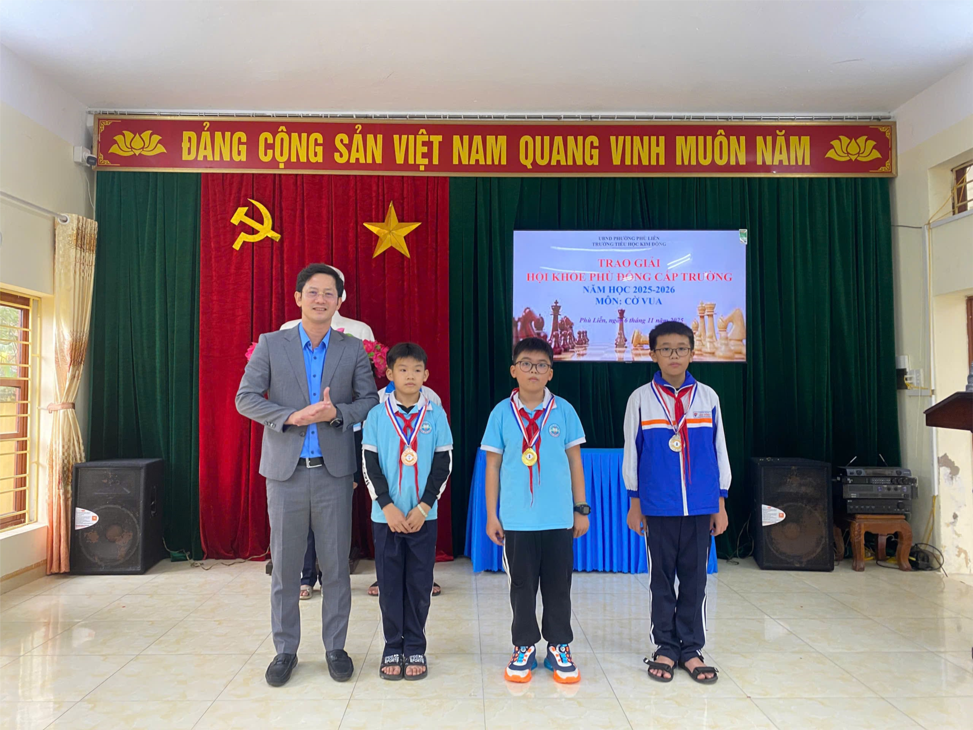Kết thúc giải đấu, Ban Tổ chức đã trao giải Nhất, Nhì, Ba cho các nhóm tuổi nam – nữ theo quy định. Đây là những học sinh xuất sắc nhất, sẽ đại diện Trường Tiểu học Kim Đồng tham dự Giải Cờ vua cấp phường, góp phần vào thành công chung của Đại hội Thể dục thể thao phường Phù Liễn lần thứ I năm 2025.