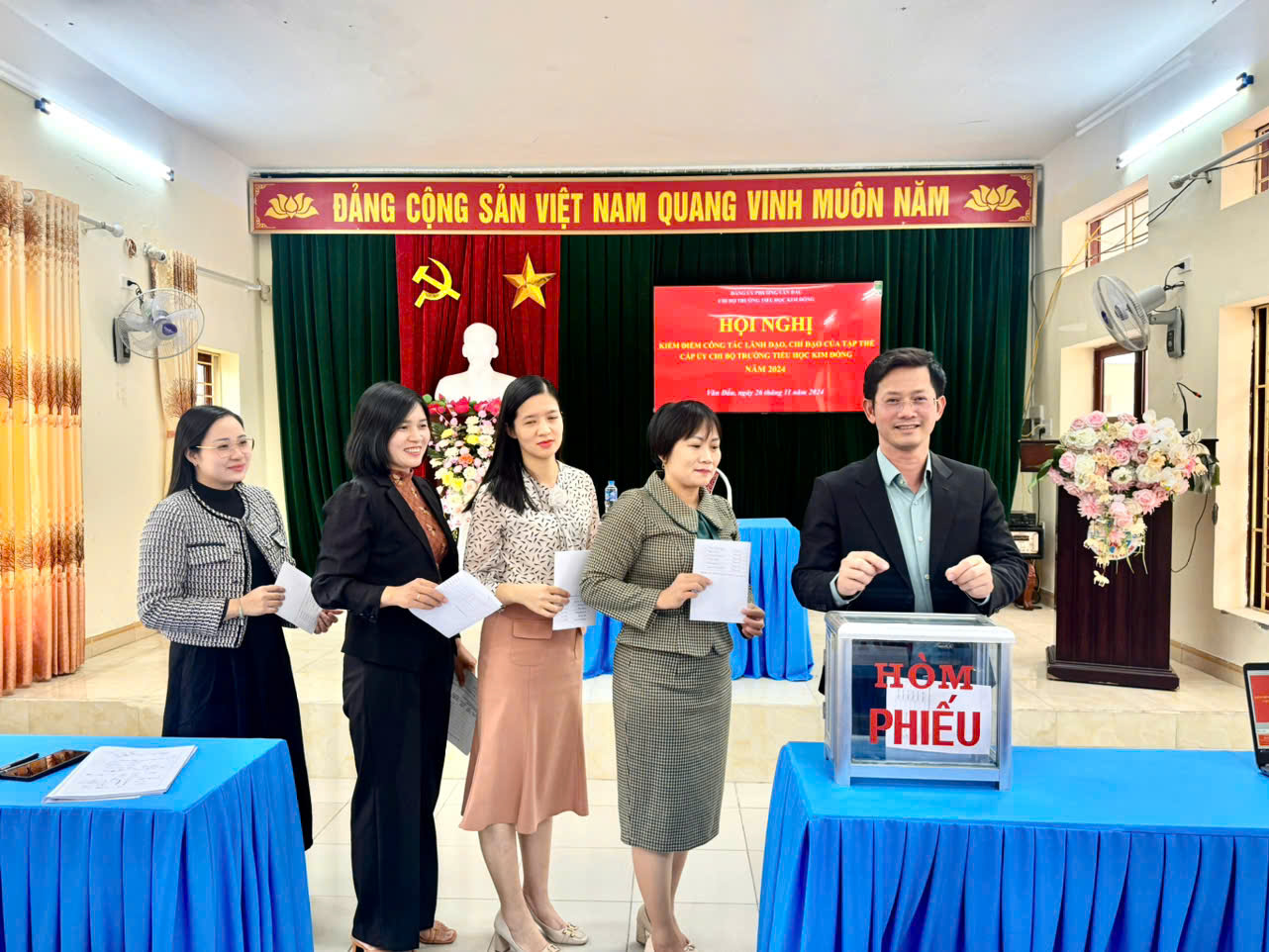 Chiều ngày 26 tháng 11 năm 2024, Chi bộ trường Tiểu học Kim Đồng tổ chức Hội nghị kiểm điểm, đánh giá, xếp loại chất lượng tổ chức cơ sở Đảng, Đảng viên năm 2024